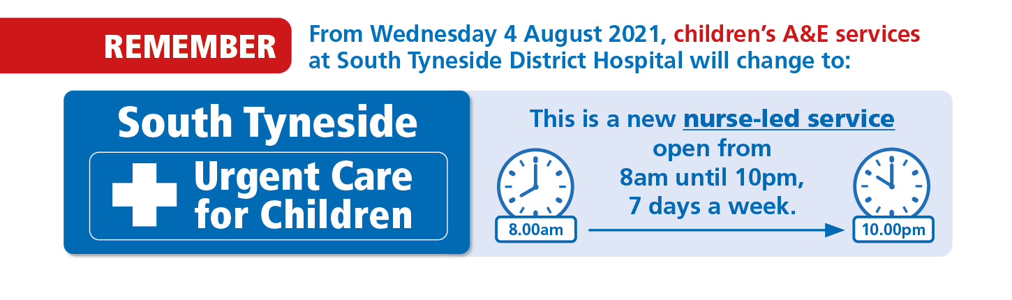 On Wednesday 4 August 2021, children’s A&E services at South Tyneside District Hospital will change to become a new nurse-led urgent care service.