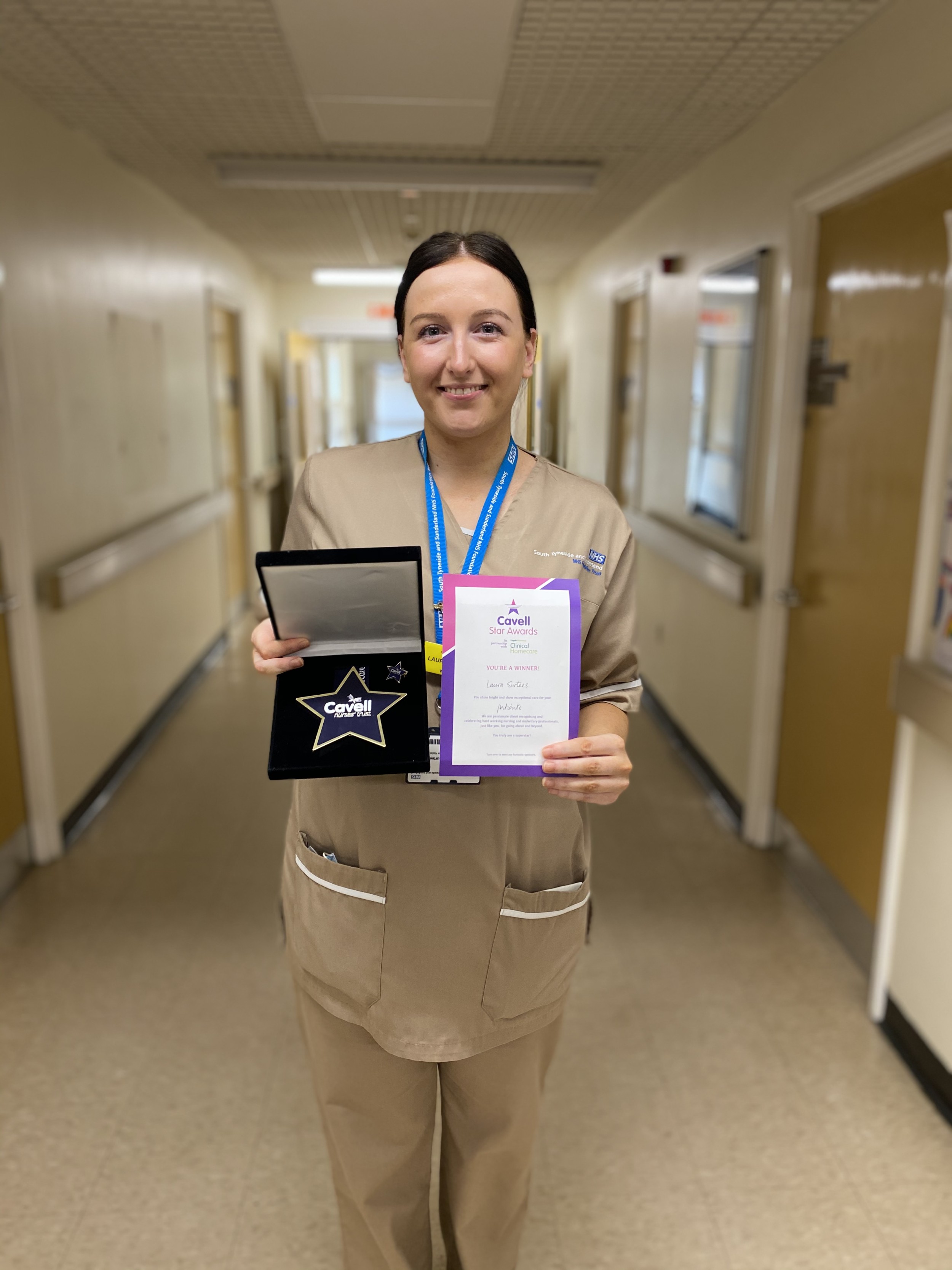 A healthcare worker at Sunderland Royal Hospital has been honoured through a national awards programme that recognises nurses, midwives and healthcare assistants who show exceptional care to patients and their families, and to their colleagues. Healthcare assistant Laura Surtees is now the proud holder of the Cavell Star Award after she was nominated by elderly care ward sister Rachael Craggs.